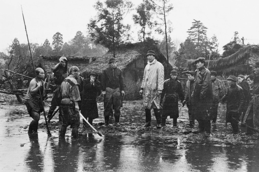 The peasant class, represented by the farmers in this film, have seen the ways the wars effect their land and homes, and fear nearly everything. But as Kikuchiyo explains to the samurai during the film, when presenting armor found in a farmer’s home, it is because of the samurai and the wars that they are wily, untrustworthy, and so fearful. The peasants see themselves below the samurai, as they would/should in this political system, and the samurai see themselves as a higher class than that of the farmers. They do learn through working together during the film to trust each other more, as the farmers are fearful of what the samurai are capable throughout the first act of the film.